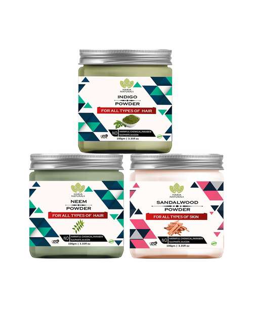 - » 100% pure & naturals indigo powder 100gm & neem powder 100gm & sandalwood powder 100gm (pack of 3) 300gm