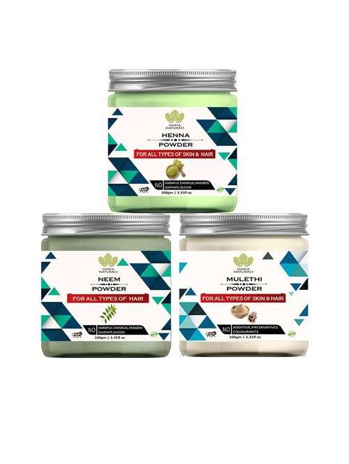 - » 100% pure & naturals henna powder 100gm & neem powder 100gm & mulethi powder 100gm (pack of 3) 300gm