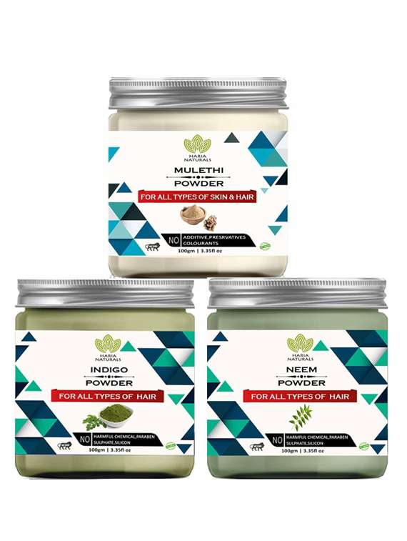 - » 100% pure & naturals mulethi powder 100gm & indigo powder 100gm & neem powder 100gm (pack of 3) 300gm