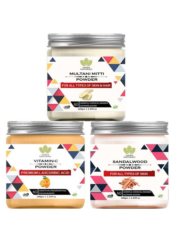 - » 100% pure & naturals multani mitti powder 100gm & vitamin-c powder 100gm & sandalwood powder 100gm (pack of 3) 300gm