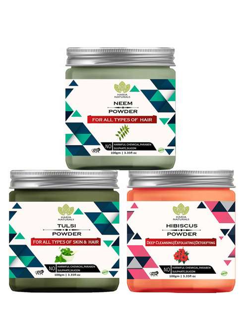 - » 100% pure & naturals neem powder 100gm & tulsi powder 100gm & hibiscus powder 100gm (pack of 3) 300gm