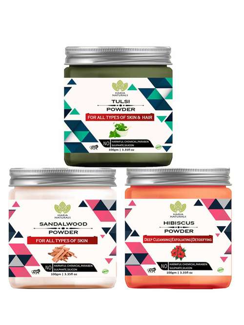 100% pure & naturals tulsi powder 100gm & sandalwood powder 100gm & hibiscus powder 100gm (pack of 3) 300gm