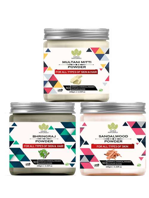 - » 100% pure & naturals multani mitti powder 100gm & bhringraj powder 100gm & sandalwood powder 100gm (pack of 3) 300gm