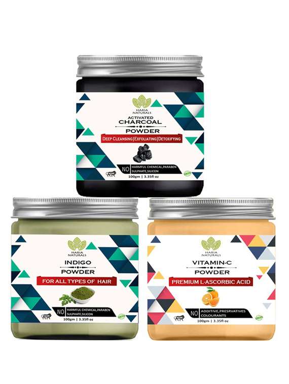 - » 100% pure & naturals charcoal powder 100gm & indigo powder 100gm & vitamin-c powder