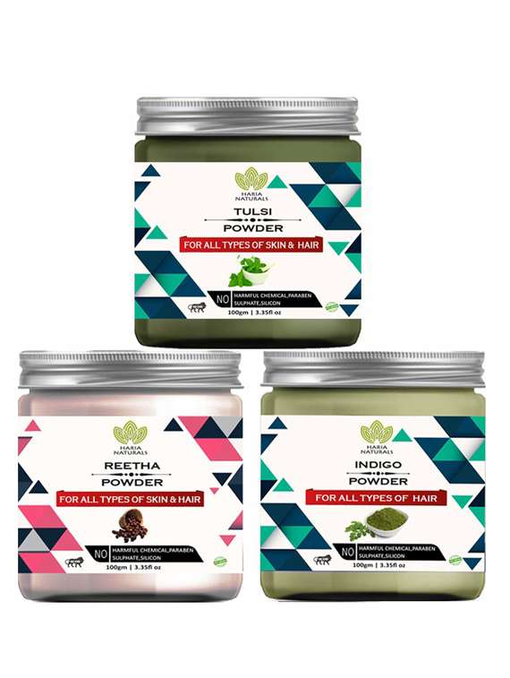- » 100% pure & naturals tulsi powder 100gm & reetha powder 100gm & indigo powder 100gm (pack of 3) 300gm