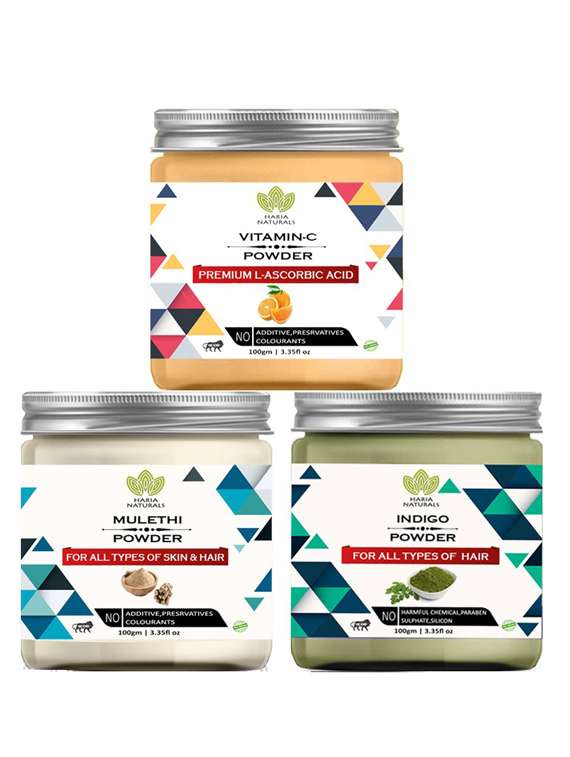 - » 100% pure & naturals vitamin-c powder 100gm & mulethi powder 100gm & indigo powder 100gm (pack of 3) 300gm