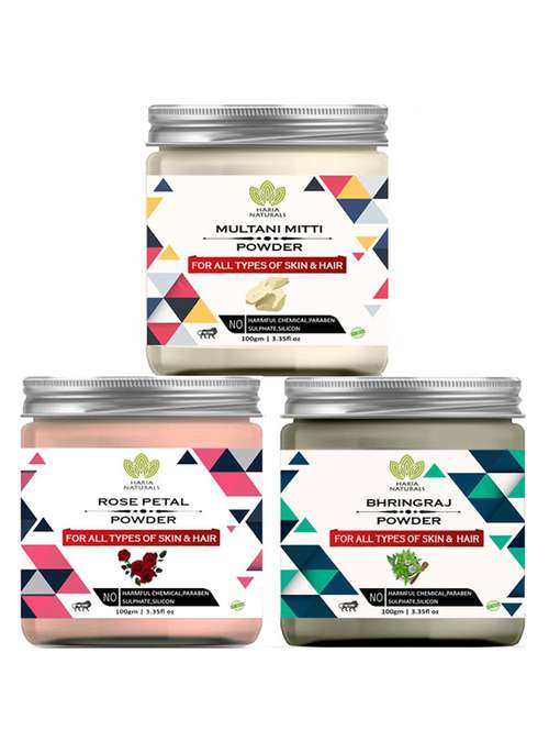 - » 100% pure & naturals multani mitti powder 100gm & rose petal powder 100gm & bhringraj powder 100gm (pack of 3) 300gm