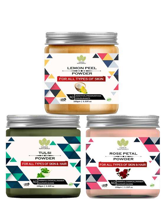 - » 100% pure & naturals lemon peel powder 100gm & tulsi powder 100gm & rose petal powder 100gm (pack of 3) 300gm
