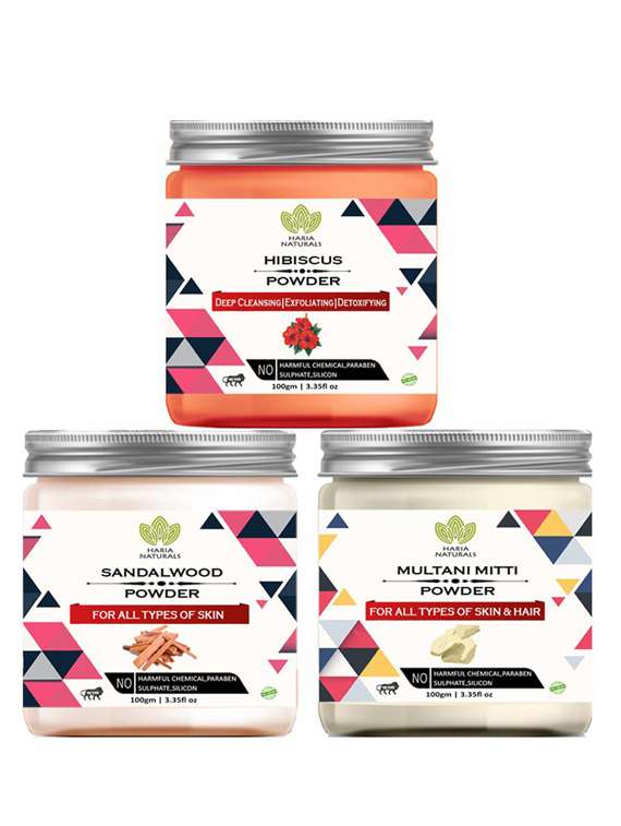 - » 100% pure & naturals hibiscus powder 100gm & sandalwood powder 100gm & multani mitti powder 100gm (pack of 3) 300gm