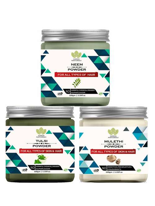 100% pure & naturals neem powder 100gm & tulsi powder 100gm & mulethi powder 100gm (pack of 3) 300gm