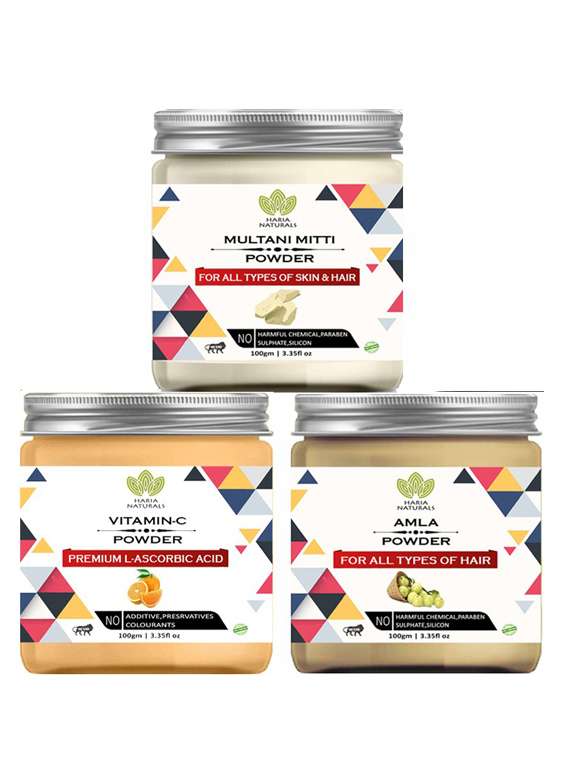 100% pure & naturals multani mitti powder 100gm & vitamin-c powder 100gm & amla powder 100gm (pack of 3) 300gm - 18638630 - Very Small Image - 1