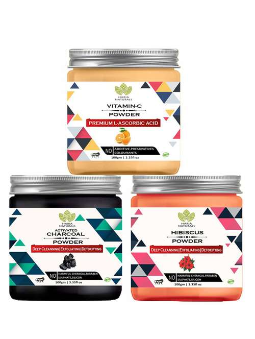 - » 100% pure & naturals vitamin-c powder 100gm & charcoal powder 100gm & hibiscus powder 100gm (pack of 3) 300gm