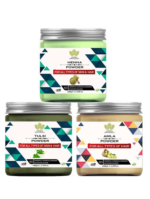 - » 100% pure & naturals henna powder 100gm & tulsi powder 100gm & amla powder 100gm (pack of 3) 300gm