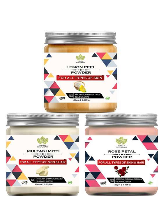 - » 100% pure & naturals lemon peel powder 100gm & multani mitti powder 100gm & rose petal powder 100gm (pack of 3) 300gm