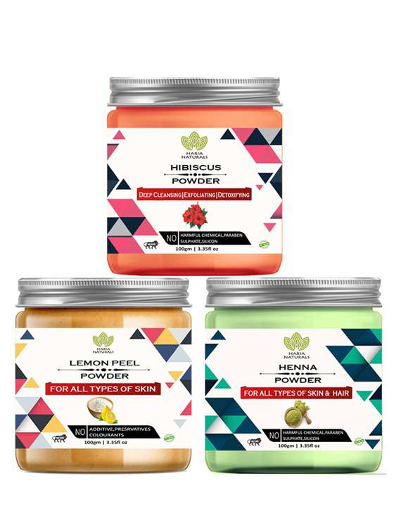 - » 100% pure & naturals hibiscus powder 100gm & lemon peel powder 100gm & henna powder 100gm (pack of 3) 300gm
