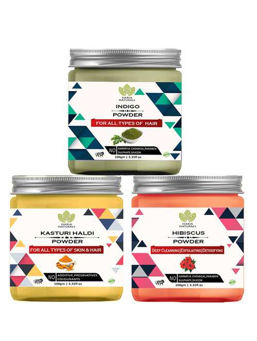 100% pure & naturals indigo powder 100gm & kasturi haldi powder 100gm & hibiscus powder 100gm (pack of 3) 300gm