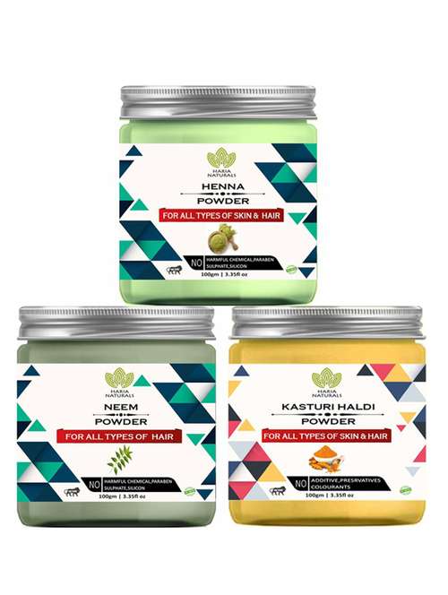 - » 100% pure & naturals henna powder 100gm & neem powder 100gm & kasturi haldi powder 100gm (pack of 3) 300gm