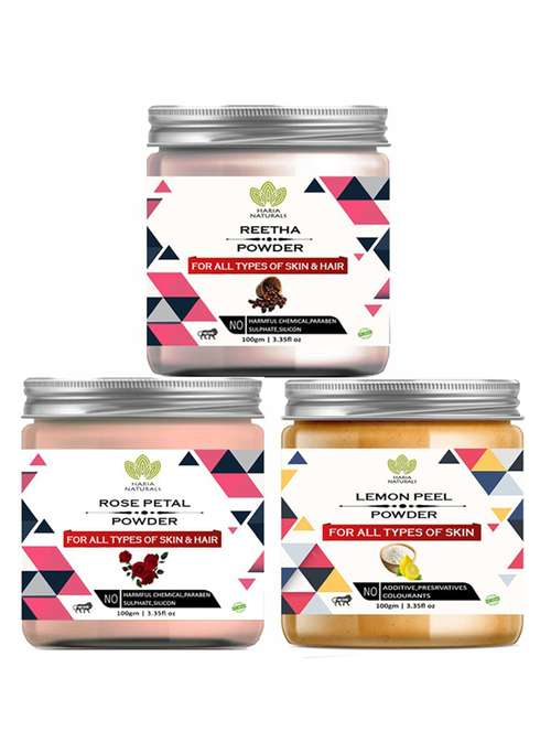 100% pure & naturals reetha powder 100gm & rose petal powder 100gm & lemon peel powder 100gm (pack of 3) 300gm