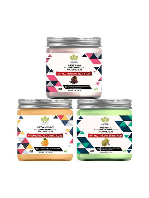 - » 100% pure & naturals reetha powder 100gm & vitamin-c powder 100gm & henna powder 100gm (pack of 3) 300gm