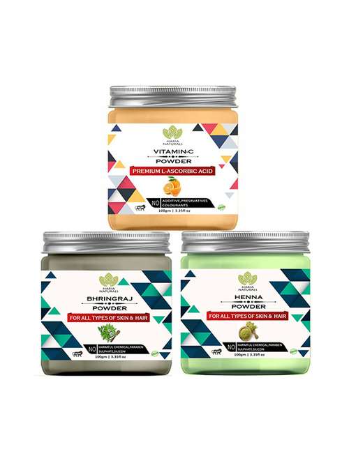 100% pure & naturals vitamin-c powder 100gm & bhringraj powder 100gm & henna powder 100gm (pack of 3) 300gm