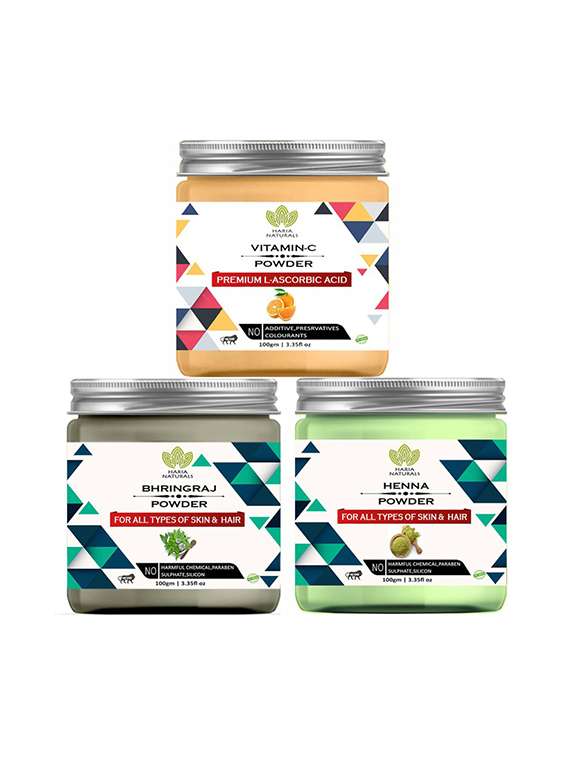 - » 100% pure & naturals vitamin-c powder 100gm & bhringraj powder 100gm & henna powder 100gm (pack of 3) 300gm