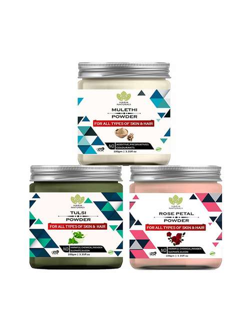 - » 100% pure & naturals mulethi powder 100gm & tulsi powder 100gm & rose petal powder 100gm (pack of 3) 300gm