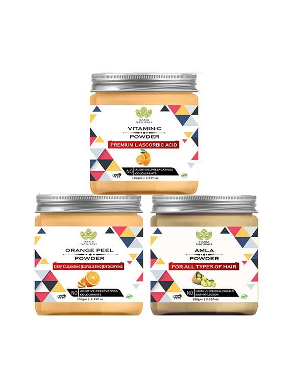 - » 100% pure & naturals vitamin-c powder 100gm & orange peel powder 100gm & amla powder 100gm (pack of 3) 300gm