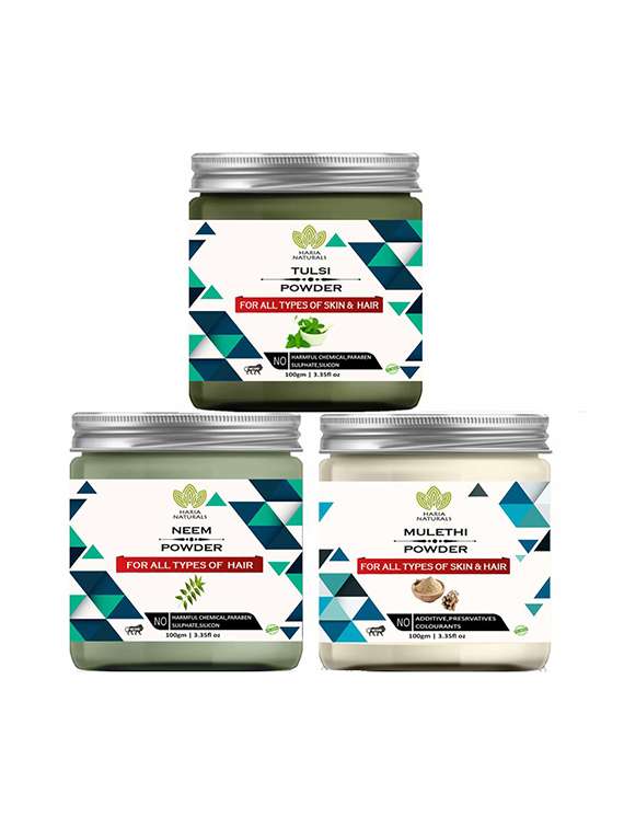 - » 100% pure & naturals tulsi powder 100gm & neem powder 100gm & mulethi powder 100gm (pack of 3) 300gm