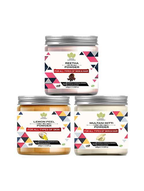 100% pure & naturals reetha powder 100gm & lemon peel powder 100gm & multani mitti powder 100gm (pack of 3) 300gm