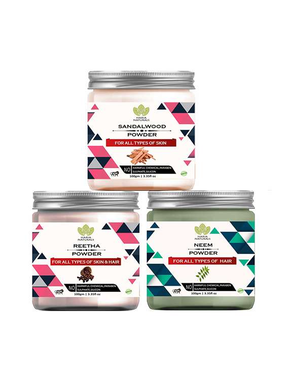 - » 100% pure & naturals sandalwood powder 100gm & reetha powder 100gm & neem powder 100gm (pack of 3) 300gm