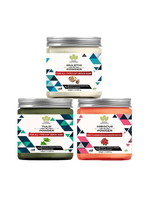 100% pure & naturals mulethi powder 100gm & tulsi powder 100gm & hibiscus powder 100gm (pack of 3) 300gm
