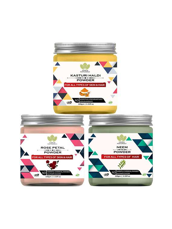 100% pure & naturals kasturi haldi powder 100gm & rose petal powder 100gm & neem powder 100gm (pack of 3) 300gm - 18638803 - Very Small Image - 1