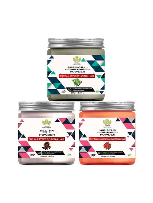 - » 100% pure & naturals bhringraj powder 100gm & reetha powder 100gm & hibiscus powder 100gm (pack of 3) 300gm