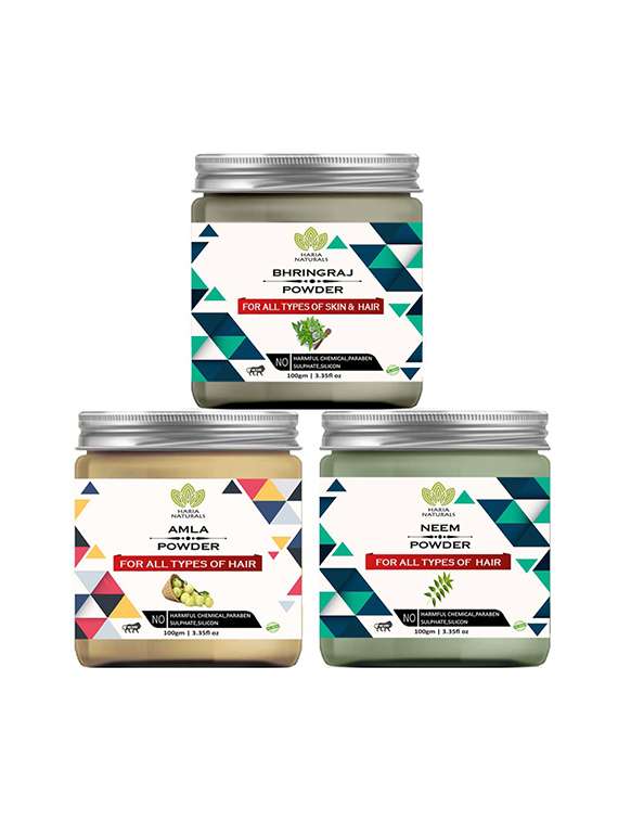 - » 100% pure & naturals bhringraj powder 100gm & amla powder 100gm & neem powder 100gm (pack of 3) 300gm