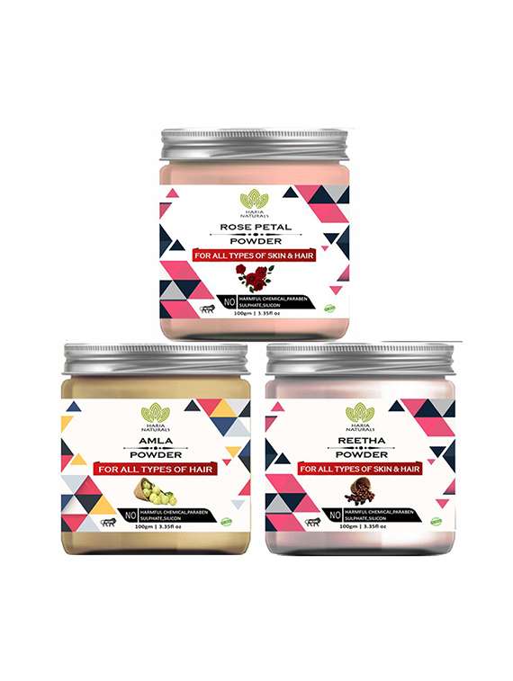 - » 100% pure & naturals rose petal powder 100gm & amla powder 100gm & reetha powder 100gm (pack of 3) 300gm