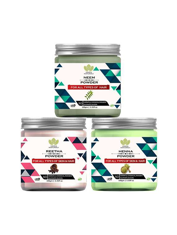 - » 100% pure & naturals neem powder 100gm & reetha powder 100gm & henna powder 100gm (pack of 3) 300gm