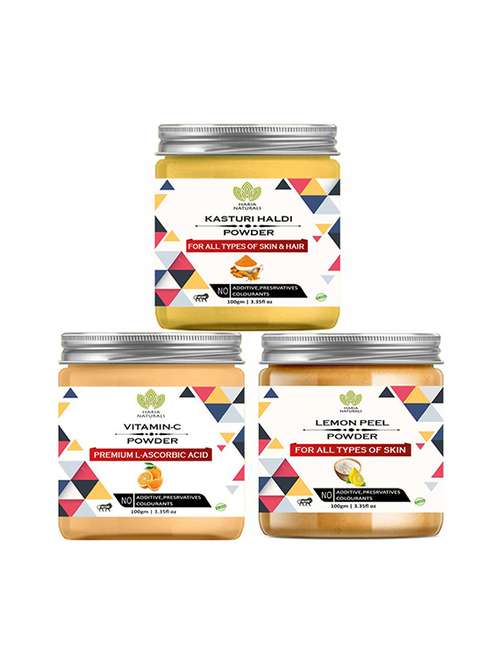 - » 100% pure & naturals kasturi haldi powder 100gm & vitamin-c powder 100gm & lemon peel powder 100gm (pack of 3) 300gm