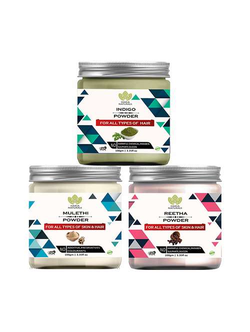 - » 100% pure & naturals indigo powder 100gm & mulethi powder 100gm & reetha powder 100gm (pack of 3) 300gm