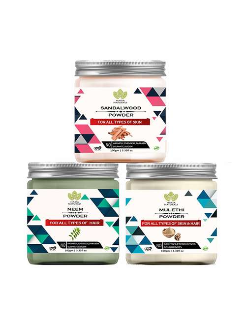 - » 100% pure & naturals sandalwood powder 100gm & neem powder 100gm & mulethi powder 100gm (pack of 3) 300gm