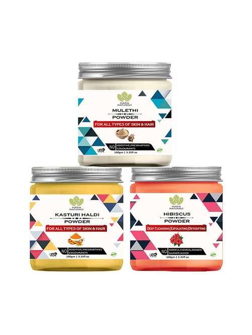 - » 100% pure & naturals mulethi powder 100gm & kasturi haldi powder 100gm & hibiscus powder 100gm (pack of 3) 300gm