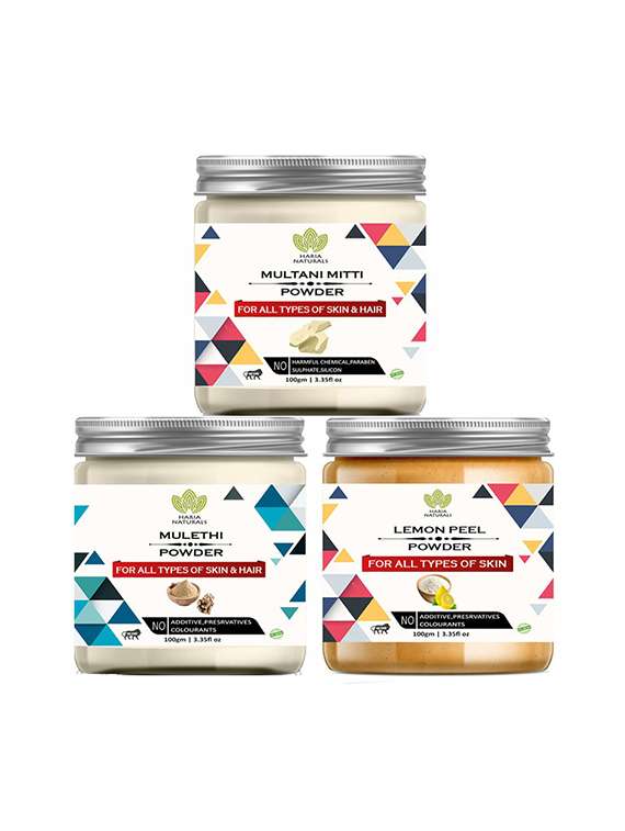 - » 100% pure & naturals multani mitti powder 100gm & mulethi powder 100gm & lemon peel powder 100gm (pack of 3) 300gm