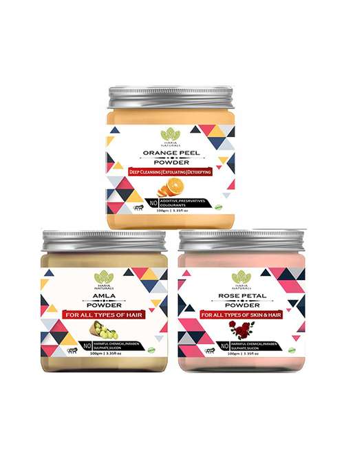100% pure & naturals orange peel powder 100gm & amla powder 100gm & rose petal powder 100gm (pack of 3) 300gm