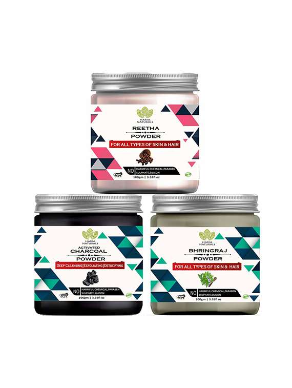 - » 100% pure & naturals reetha powder 100gm & charcoal powder 100gm & bhringraj powder 100gm (pack of 3) 300gm