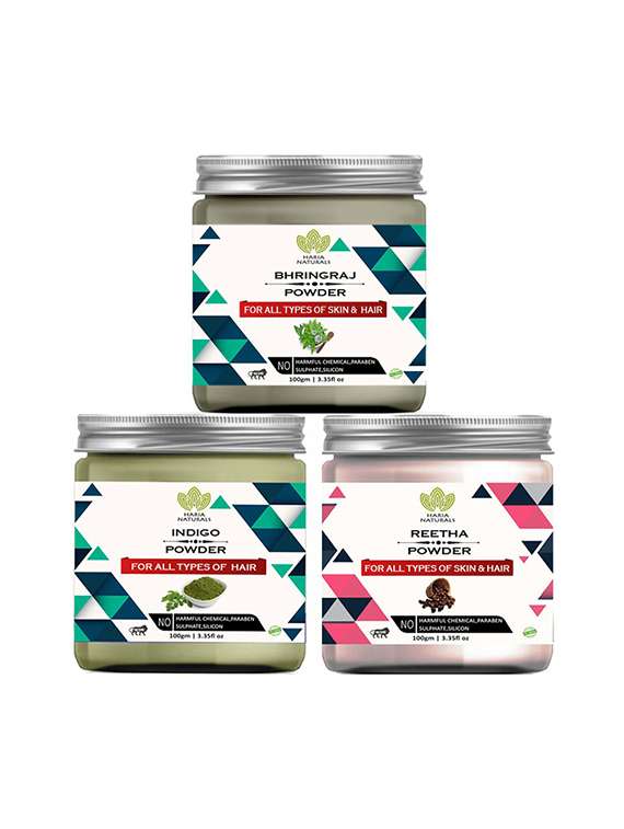 - » 100% pure & naturals bhringraj powder 100gm & indigo powder 100gm & reetha powder 100gm (pack of 3) 300gm