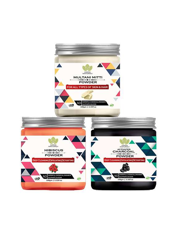 - » 100% pure & naturals multani mitti powder 100gm & hibiscus powder 100gm & charcoal powder 100gm (pack of 3) 300gm