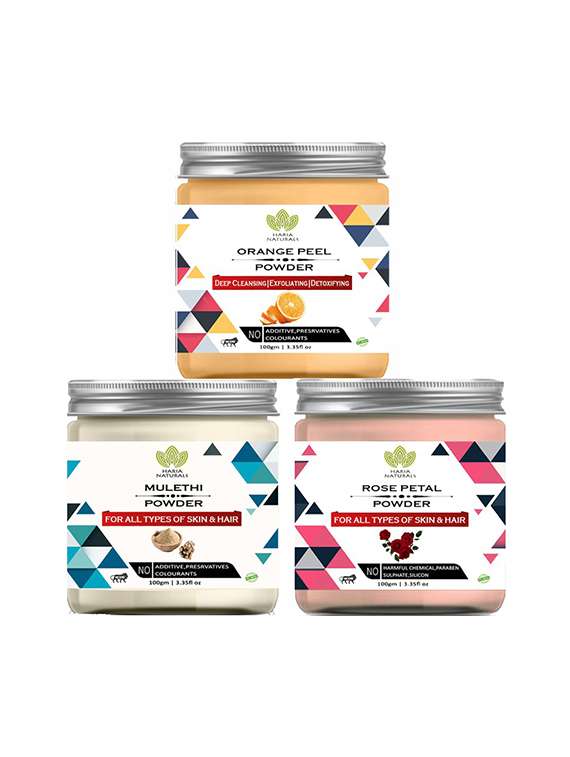 - » 100% pure & naturals orange peel powder 100gm & mulethi powder 100gm & rose petal powder 100gm (pack of 3) 300gm