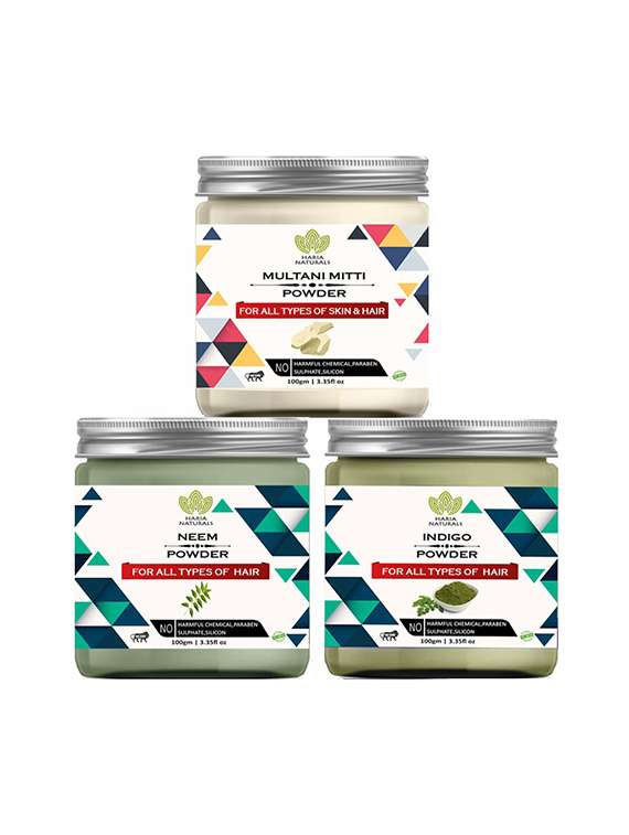 - » 100% pure & naturals multani mitti powder 100gm & neem powder 100gm & indigo powder 100gm (pack of 3) 300gm