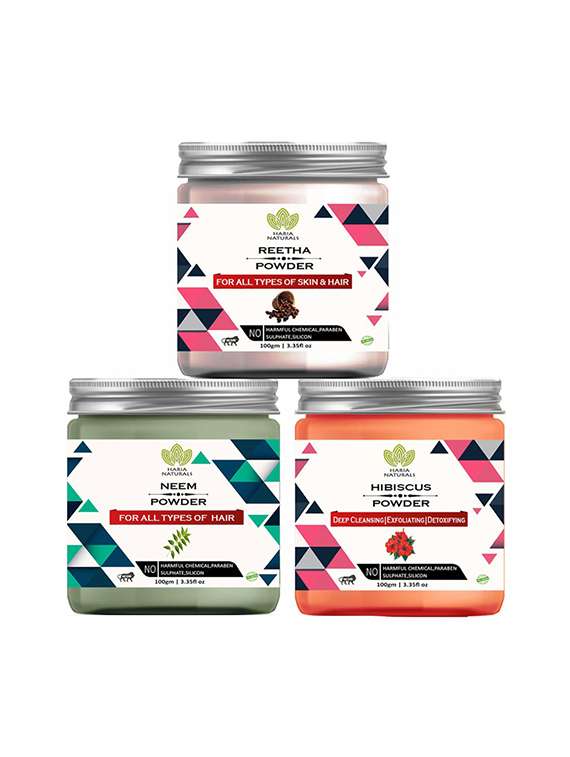 - » 100% pure & naturals reetha powder 100gm & neem powder 100gm & hibiscus powder 100gm (pack of 3) 300gm