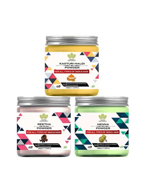 - » 100% pure & naturals kasturi haldi powder 100gm & reetha powder 100gm & henna powder 100gm (pack of 3) 300gm
