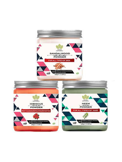 100% pure & naturals sandalwood powder 100gm & hibiscus powder 100gm & neem powder 100gm (pack of 3) 300gm